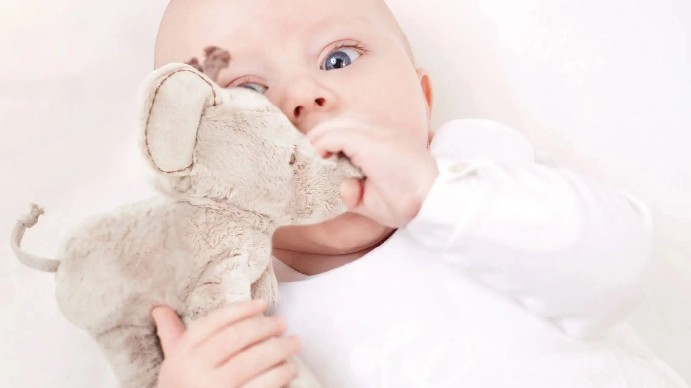 Many newborns find it soothing to hold something soft in their hand - especially something that smells of their parents! A soft baby soother is the perfect first toy to pop in your hospital bag.