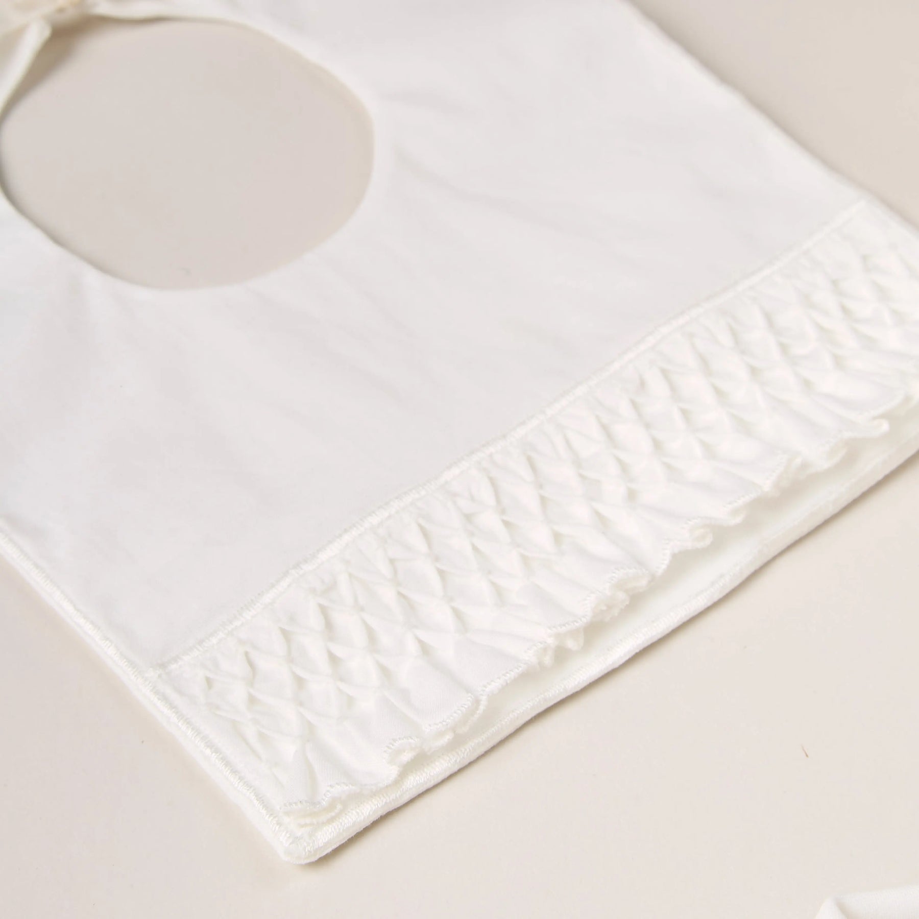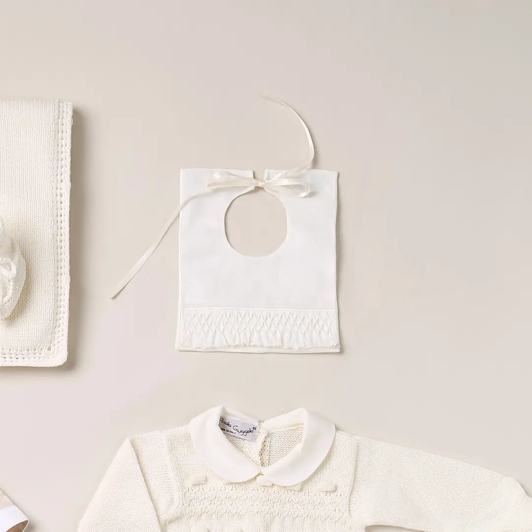 Elegant baby bib with smocked detail - perfect for smart occasions. The Eleganza bib is lovingly designed and handmade in Sicily using the finest materials.