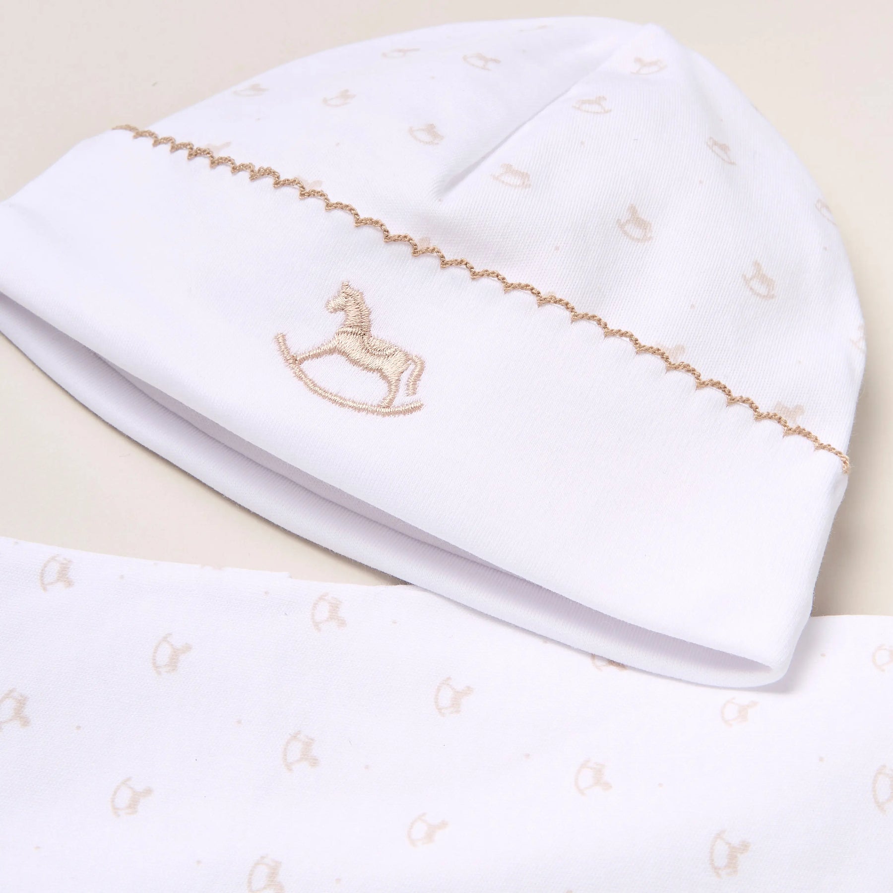 Blue Almonds Ltd Baby Embroidered Hat - Beige Rocking Horse Blue Almonds X Lyda Baby