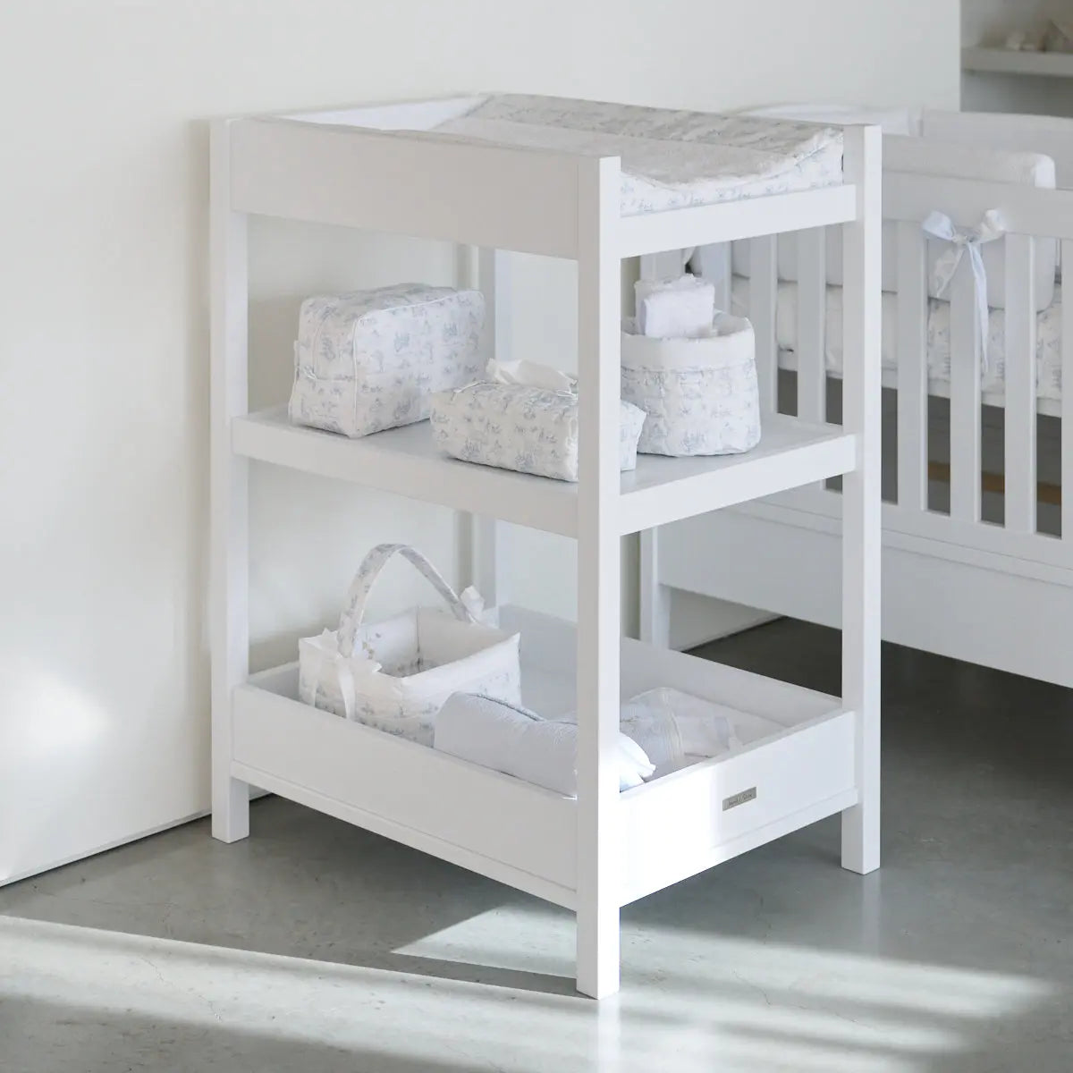 The charming and sleek 'Design' Changing Table is the perfect finishing touch for your little one’s nursery. Its compact size fits snugly into smaller rooms, while the open design without drawers lets you easily reach all your baby essentials.