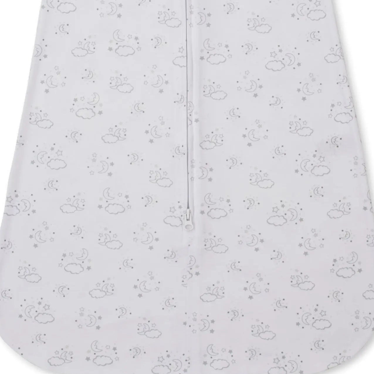 Wrap your little dreamer in cosy softness with this Baby Sleeping Bag from Kissy Kissy. Crafted from gentle white Pima cotton, it features an adorable grey night-sky print that sparks sweet dreams. The easy zip fastening keeps your baby snug all night long. Perfect for both boys and girls, and pairs beautifully with matching items for a complete bedtime set. Sweet dreams start here!