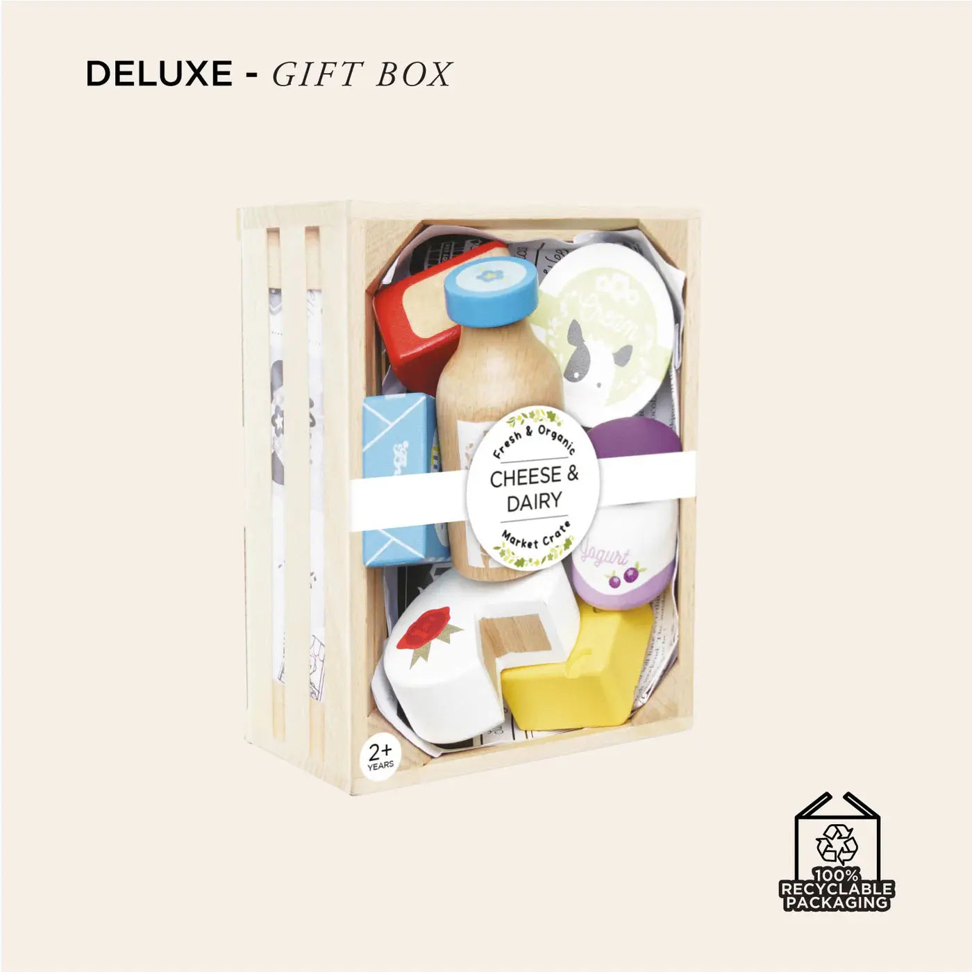 A great addition to any child's play this yummy cheese and the dairy crate is just the ticket for inspired, imaginative fun.