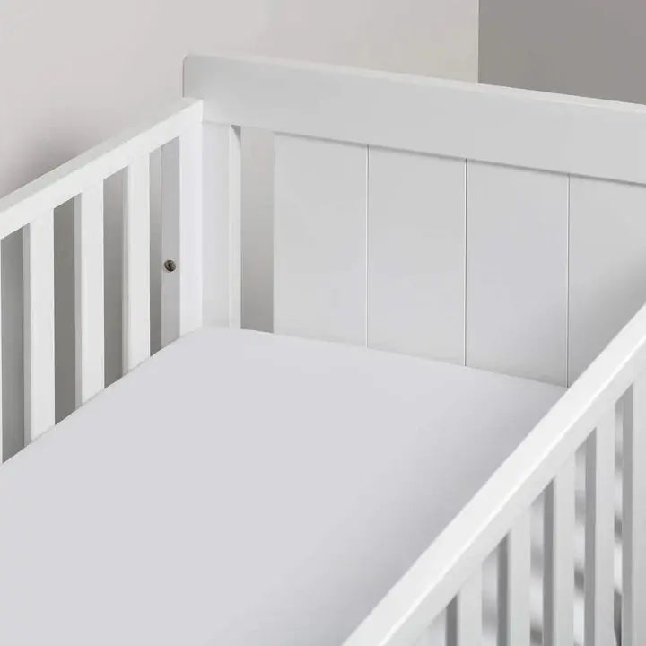 A plain fitted sheet in top quality pure white Cotton to match any of the Cotbed bedlinen design.