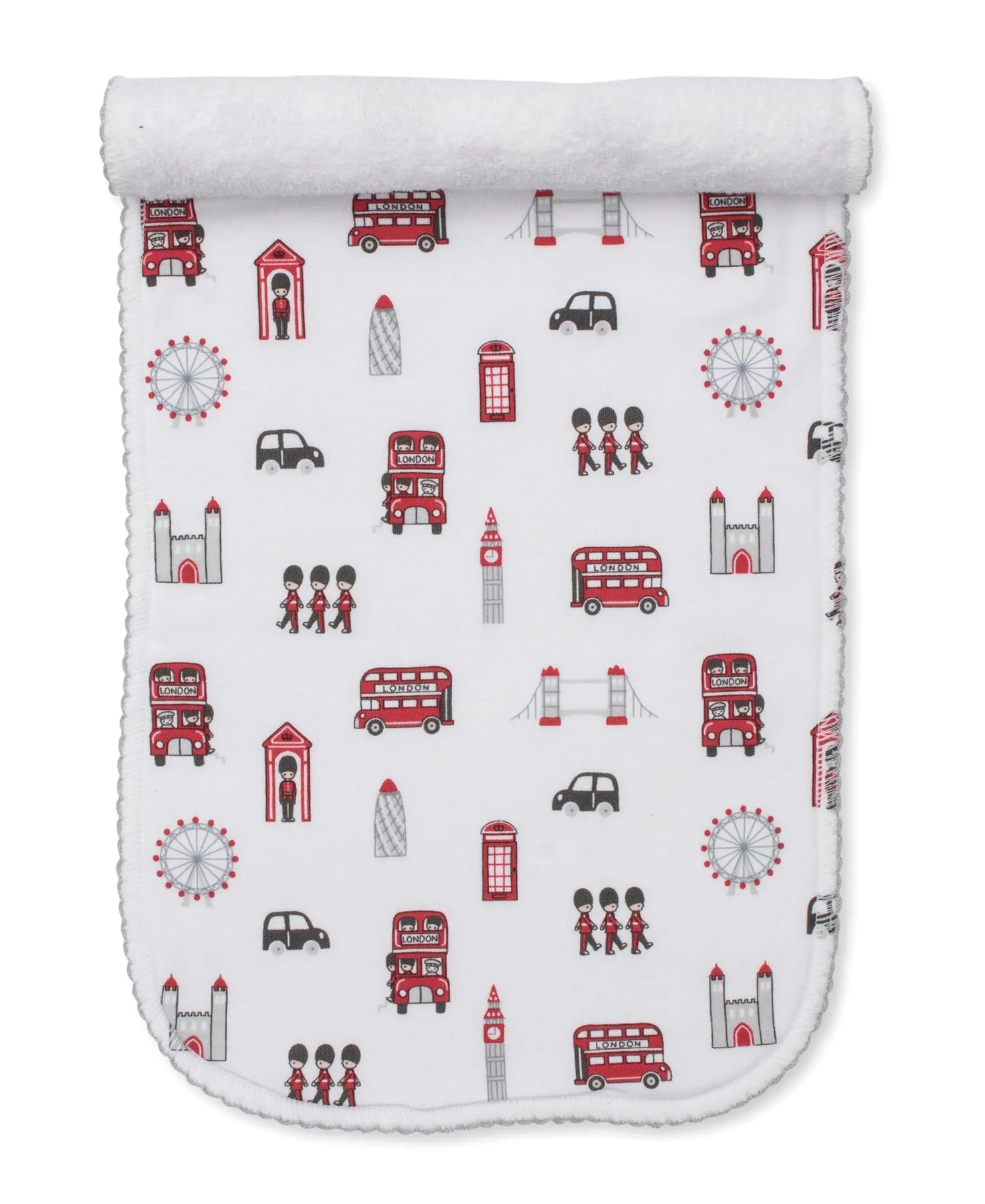 This soft white baby burp cloth, crafted from gentle Pima cotton, is perfect for both baby boys and girls. Featuring a playful iconic London print...