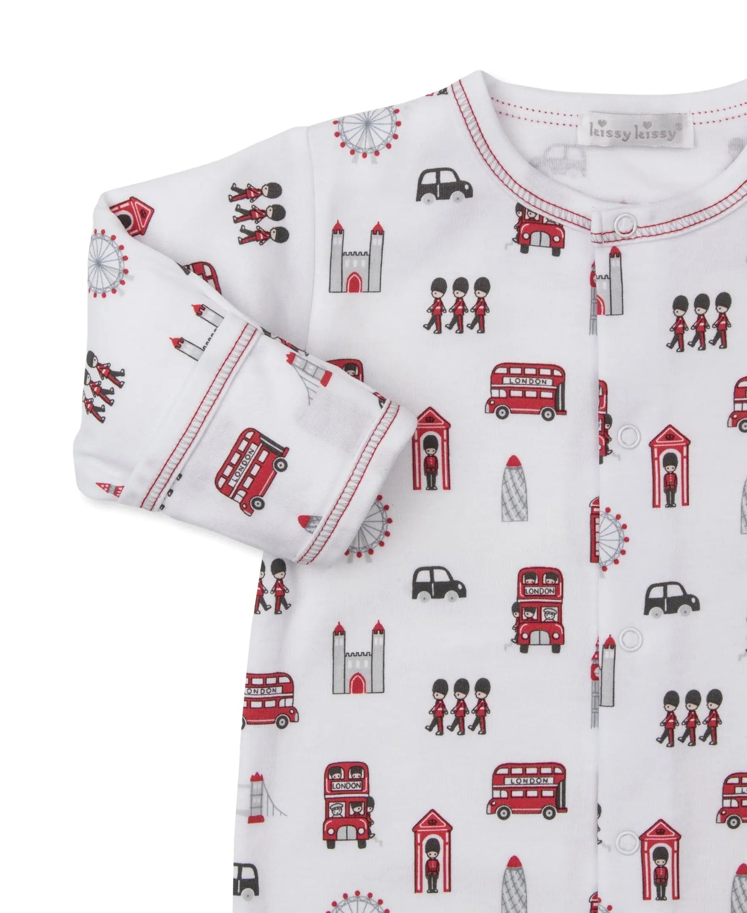 Made from luxuriously soft white Pima cotton, this Baby Footie by Kissy Kissy is perfect for both baby boys and girls. Featuring a lively London-themed...