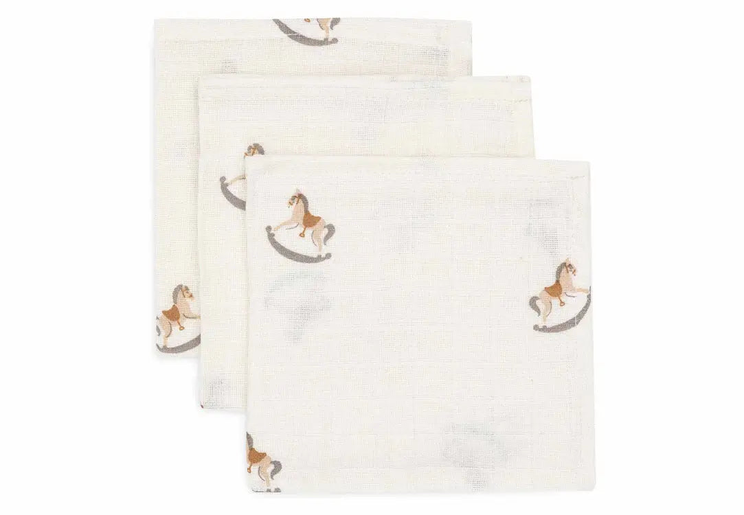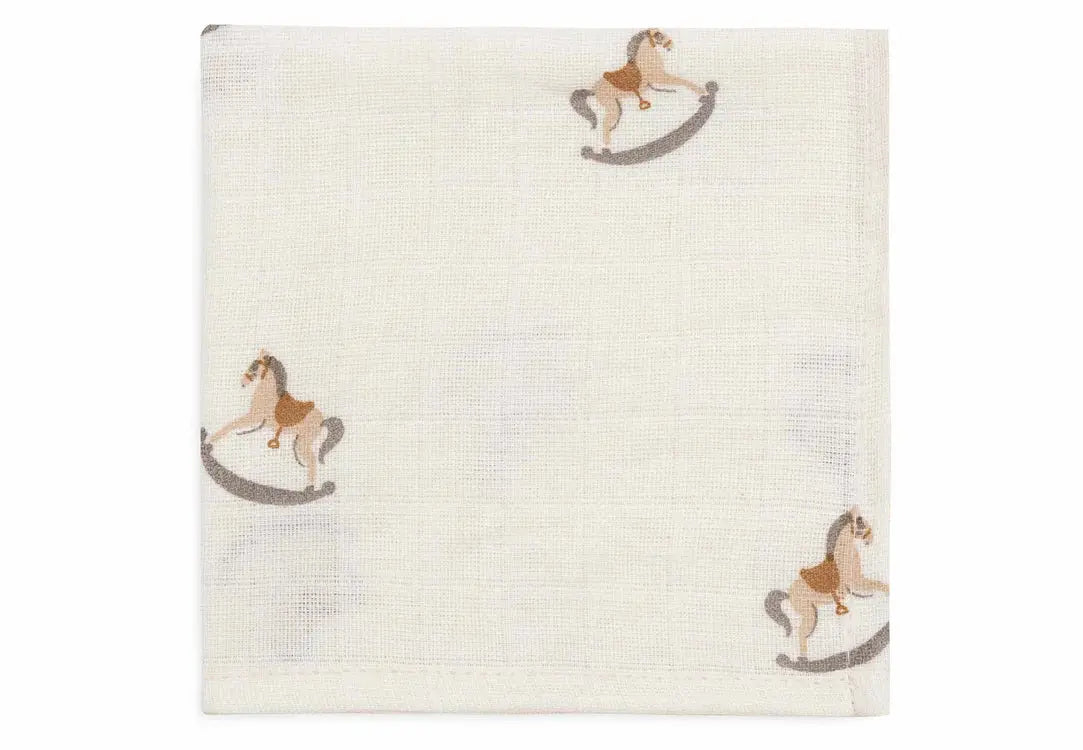 Muslin face cloths are always handy, and these charming Nostalgic Ride mouth cloths are no exception! Perfect for wiping little faces clean, they feature delightful rocking horse prints in soft, neutral tones. With this 3-pack, you’ll always have a fresh cloth ready for any mess—cute, practical, and ready for endless washes!