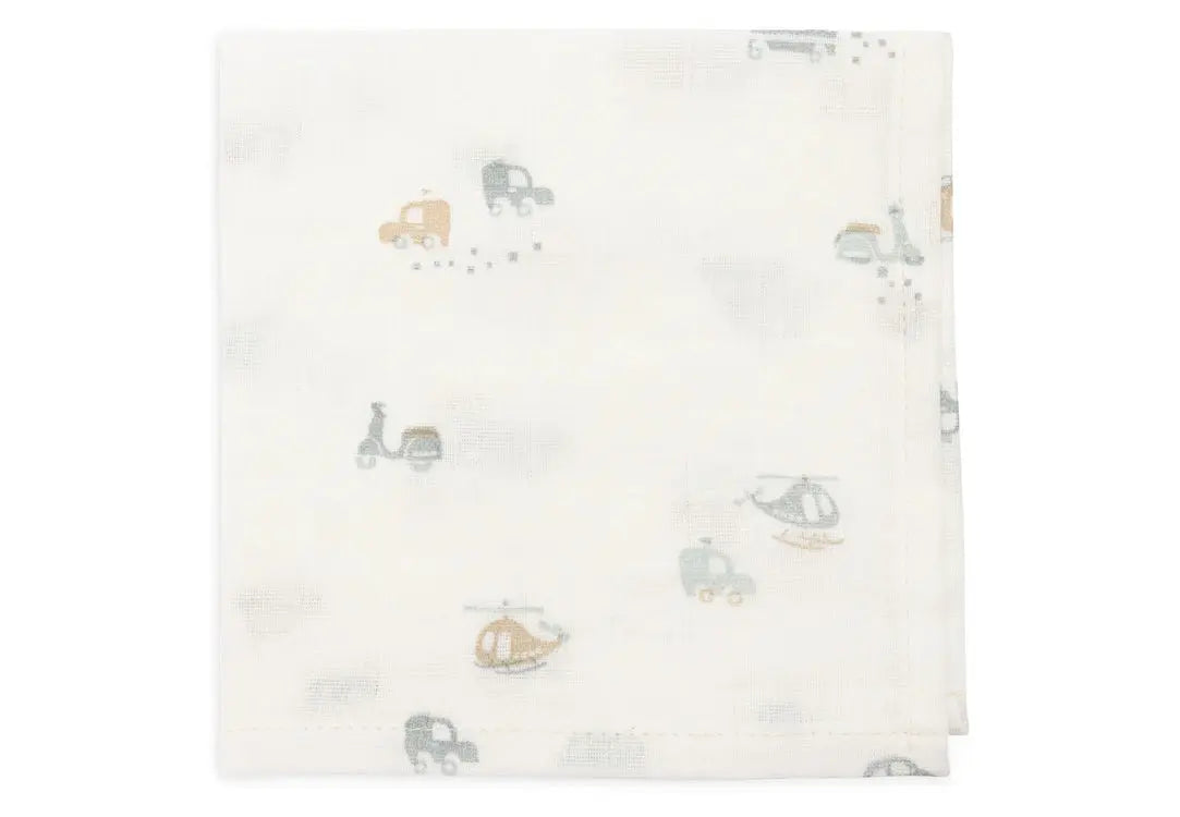 These transport inspired muslin mouth cloths are incredibly cute and perfect for keeping faces clean and fresh. Made of soft muslin, it's so wonderfully gentle on the skin. With a 3-pack like this, you're always covered! How cute is this 'On The Go' print, with cars, helicopters and scooters.