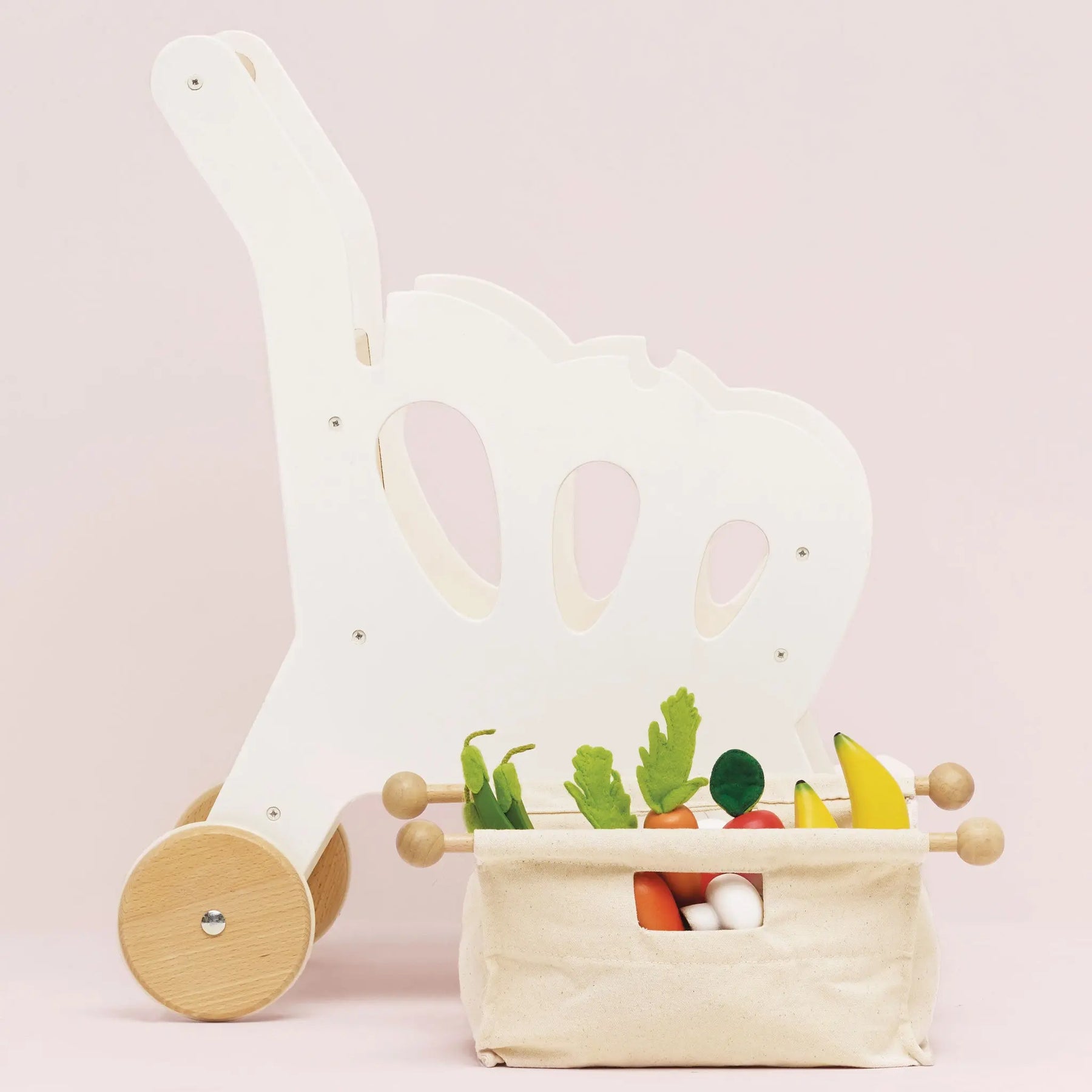A super stylish wooden shopping trolley for all their mini food adventures.