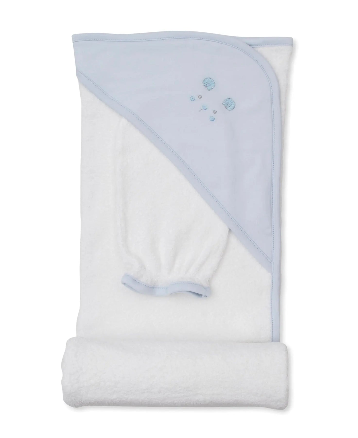 Blue Almonds Ltd Teddy Bear Time - Hooded Towel w/ Mitt Set - White/Lt Blue - BOYS Kissy Kissy