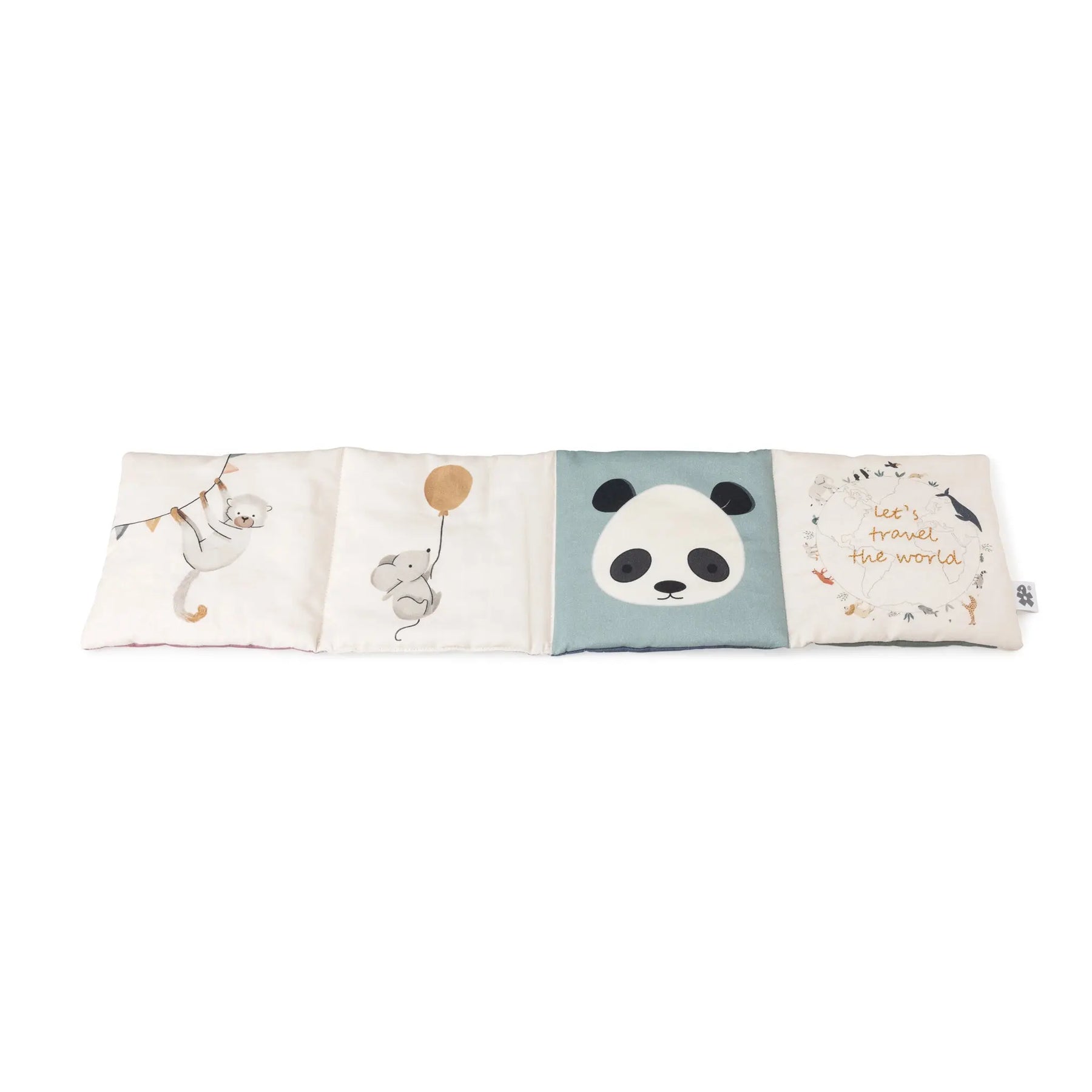 The fabric book can be flipped according to mood, inspiring countless stories based on the illustrations. Use the book in the lift or stroller for a cosy moment or while on the go. It can also serve as motivation for tummy time, helping your baby strengthen their neck muscles during playtime on the floor.